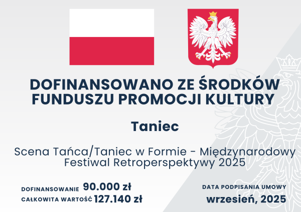 Financed by the Ministry of Culture and National Heritage of the Republic of Poland, as part of the “Dance” programme, realized by the National Institute of Music and Dance.
