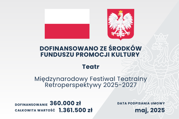 Zadanie "Międzynarodowy Festiwal Teatralny Retroperspektywy" jest realizowane dzięki dofinansowaniu z budżetu Miasta Łodzi.